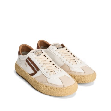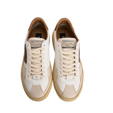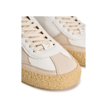 Sneaker Vintage realizzata in ecopelle con il fondo in gomma vulcanizzata. Bianco/moro