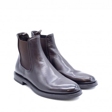 Stivaletto con molle laterali in pelle moka sfumato dal classico effetto vintage Pantanetti.