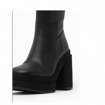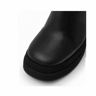 Modello stivale donna Melissa Iris black a 3/4 in pelle colore nero. Calzata facilitata dalla da zip sul lato interno . Altezza fusto 18 cm. Forma tonda e fondo distintivo del modello: altezza tacco cm 11 plat anteriore cm 4