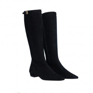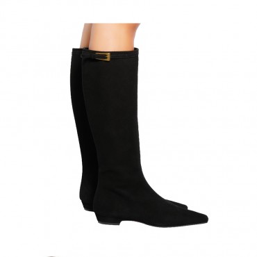 Roberto Festa stivale al ginocchio FOLD in camoscio nero con tacco basso.