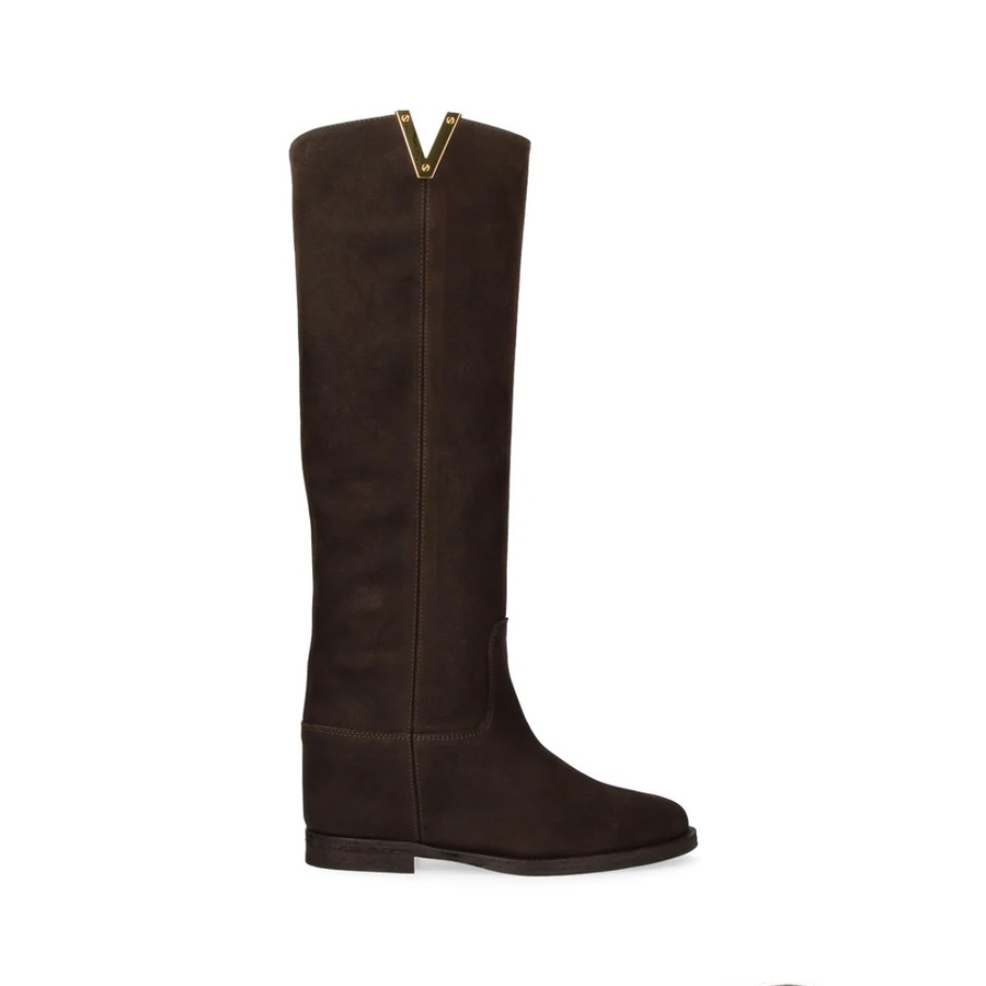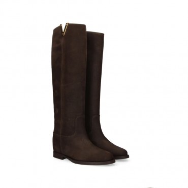 VIA ROMA 15 stivale zeppa interna e zip in pelle di camoscio moro