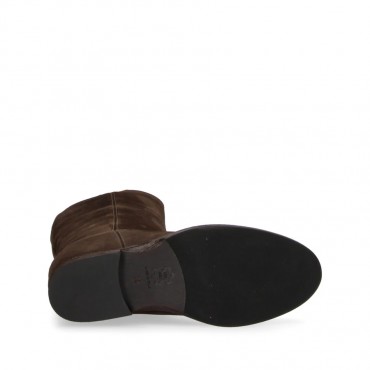 Via Roma 15 stivale tubolare con zip Laterale Tomaia in camoscio testa di moro con V oro.