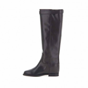 VIA ROMA 15 stivale zeppa interna in pelle nero e fibbia oro