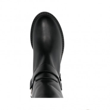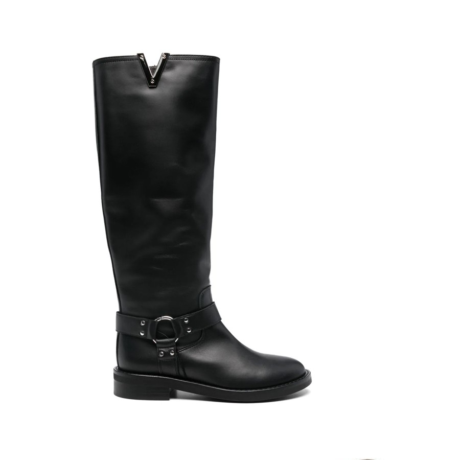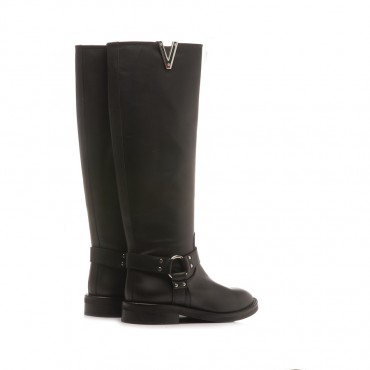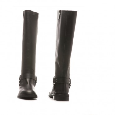 Stivale Via Roma 15 Biker in pelle nera con V nikel e cinturino. Senza zeppa interna