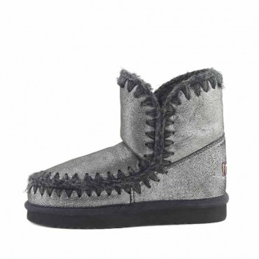 L'eskimo 18 è la versione petite che si aggiunge alla iconica collezione eskimo. Modello realizzato a mano in montone double-face con riporto microglitter colore nero metallizzato (Mgblk) straordinariamente caldo con cuciture in lana lavorate all'uncinetto in tinta con leggero effetto a contrasto. Il pellame particolare e prezioso dona alla tinta unita dello stivale un effetto particolarmente luminoso e ricercato. Con conchiglia di sostegno, tallone rinforzato e resistente suola esterna in gomma ed EVA. Incredibilmente confortevole e resistente. Altezza 18 centimetri. Vestibilità regolare.