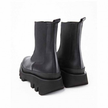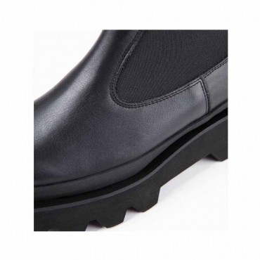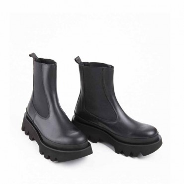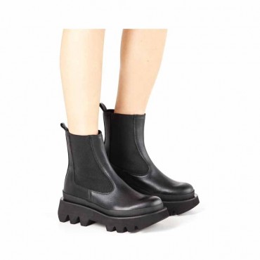 Modello stivale Bianca 3/4 da donna in pelle nappa ed elastico colore nero. Calzata facilitata dall'elastico ai lati.. Altezza fusto 17 cm. Forma tonda e fondo roccia dal distintivo disegno in EVA: altezza tacco cm 5 plat anteriore cm 2. Utilizzabile non solo sotto pantaloni ma anche sotto vestiti e gonnelloni a sdrammatizzare un look romantico.