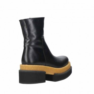 Modello stivaletto Basil da donna in pelle colore nero. Calzata facilitata da zip sul lato interno e dall'elastico ai lati.. Forma tonda e fondo roccia dal distintivo disegno in EVA e para a contrasto a doppio livello : altezza tacco cm 7.5 plat anteriore cm 4.7. Utilizzabile non solo sotto pantaloni ma anche sotto vestiti e gonnelloni a sdrammatizzare un look romantico.