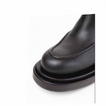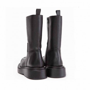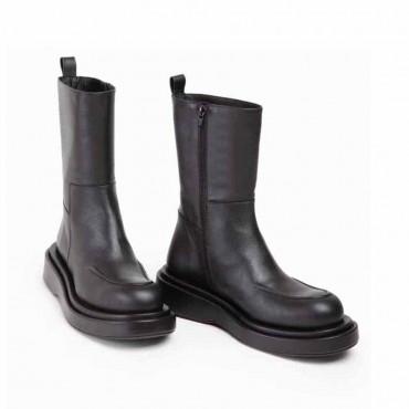 Modello stivaletto Basil da donna in pelle colore nero. Calzata facilitata da zip sul lato interno. Forma tonda e fondo aalto dal distintivo disegno in EVA : Altezza piattaforma anteriore: 2,5 cm Altezza piattaforma posteriore: 4,5 cm Altezza gambe: 22 cm. Utilizzabile non solo sotto pantaloni ma anche sotto vestiti e gonnelloni a sdrammatizzare un look romantico.