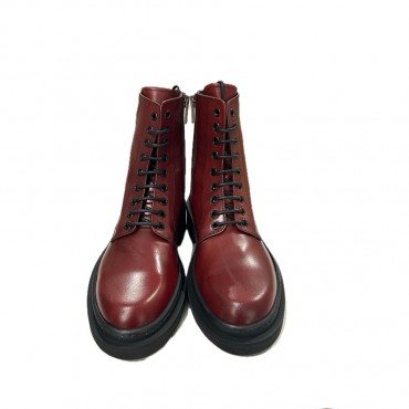 PANTANETTI donna anfibietto con zip e laccio in pelle bordeaux