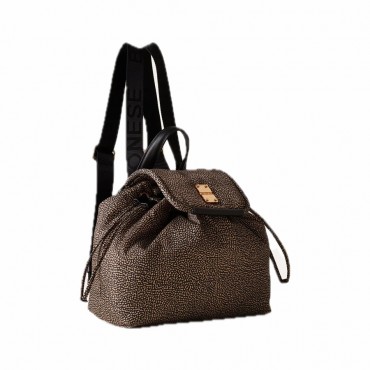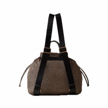 Zaino Donna Borbonese Cahier in Tessuto OP Naturale Nero