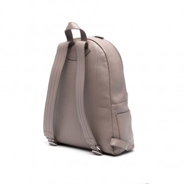zaino in pelle martellata tracolle regolabili manico a mano chiusura con zip a doppio scorrimento tasca frontale con zip due tasche esterne laterali comparto interno per notebook comparto interno per Ipad due taschini interni portapenne dettagli finitura nichel lucido made in Italy