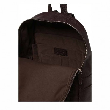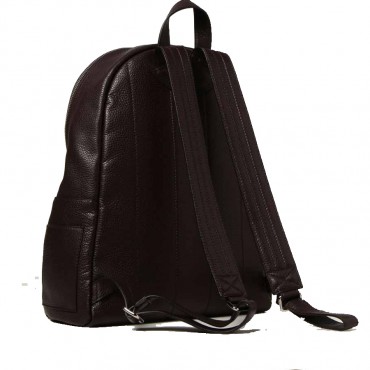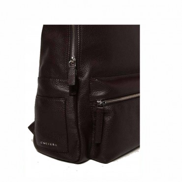 zaino in pelle martellata tracolle regolabili manico a mano chiusura con zip a doppio scorrimento tasca frontale con zip due tasche esterne laterali comparto interno per notebook comparto interno per Ipad due taschini interni portapenne dettagli finitura nichel lucido made in Italy